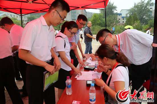 7月2日傍晚7點半,記者終于結(jié)束了當天的面試監(jiān)督工作。走出考場,望著或滿臉笑容、或眉頭緊鎖的考生,望著等候在考點門前的考生家屬和朋友,記者衷心祝愿他們能夠取得理想的成績,能夠有一個光明的未來。畢竟,在這樣公正透明的環(huán)境下競爭,每一個人都多了一分沖勁兒和期望啊。(大眾網(wǎng)-山東24小時記者 樊思思)