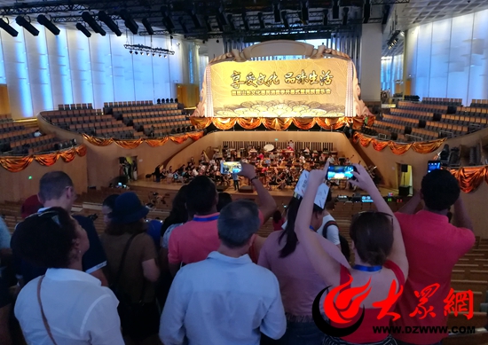 大眾網濟南7月20日訊 今天下午,“向世界講好山東故事——拉美西語國家新聞官山東行”活動在濟南啟動。媒體團首站來到省會大劇院采訪,現場的民樂團恰好正在排練演奏波瀾壯闊的《楚頌》。氣勢恢宏的樂曲再現“霸王別姬”的悲壯,讓媒體團成員沉醉其中,久久不愿離去。