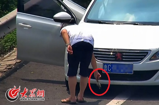 駕駛員在應急車道上違法停車,從車頭導風口拽出一只麻雀尸體