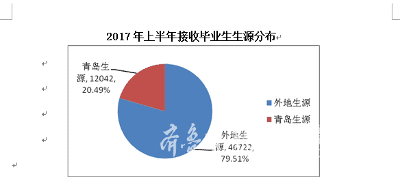 從生源地來看,接收外地生源畢業生46722人,占接收總人數的79.51%,同比增長9.23%。在接收畢業生中,在青高校畢業生37734人,占接收總人數的64.21%,同比增長1.74%,占在青高校應屆畢業生總人數的37.73%。