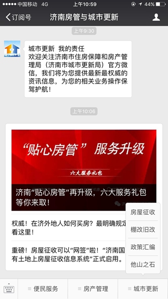 大眾網濟南8月8日訊 今天上午,記者從濟南市住房保障和房產管理局召開的新聞通報會上了解到,“房產與城市更新”微信公眾號上線了,以后,濟南市民可以通過該公眾號查詢自己的拆遷補償款、安置房面積戶型等具體信息。