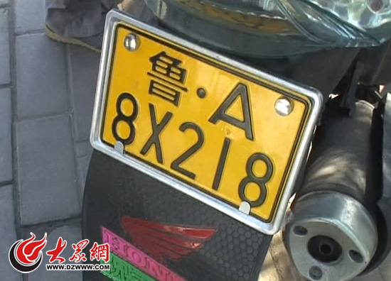 昨天下午,濟(jì)南槐蔭交警查處的一輛摩托車為了加油竟懸掛假牌,該牌照沒有防偽標(biāo)志。