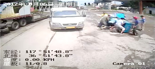 8月6日中午11點半左右,市公共汽車公司周村分公司106路駕駛員周奇駕駛公交車從后溝村駛往周村。因連續(xù)幾日下雨,路面凹凸不平有很多大坑,路況不好,周奇緩慢地開著車。行至正陽路北首高架橋附近時,周奇看到一輛電動三輪車從右后方駛?cè)胍曇埃嶔ぶ羞M(jìn)了幾秒后卻突然側(cè)翻在地,三輪車車斗坐著一位大娘也摔倒在地。