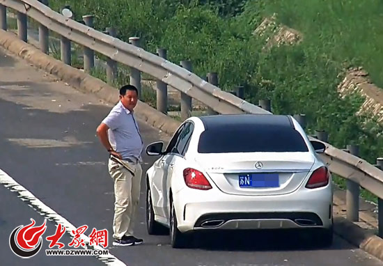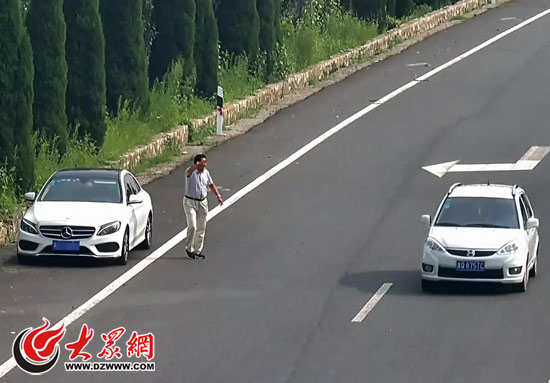 十幾分鐘后,這輛奔馳在分道口再次停車。這次,中年男子下車后先是攔車問路,但連續(xù)攔了好幾輛車都沒有停車的。男子隨即從車上拿出一卷衛(wèi)生紙,翻越護欄去路邊綠化帶里解手。幾分鐘后,男子回到高速公路上繼續(xù)攔車,最終攔下一輛轎車問路。