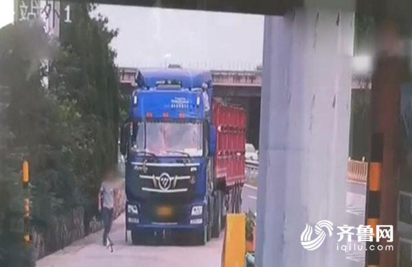 下午3點左右,深海高速膠州收費站口,一輛大貨車司機副駕在監控下調換座位,隨后民警對大貨車進行檢查,司機對民警大喊,“你看走了眼”。