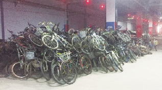 記者在山東農業大學校本部的地下停車場內看到,清理出來的廢舊自行車堆放在一起,一輛壓著一輛,足足有百余輛。據學校保安介紹,這些自行車都是前一段時間清理出來的,有的已經被人領走,而堆放在地下車庫的都是到目前為止無人認領的,自行車上布滿一層厚厚的灰塵。