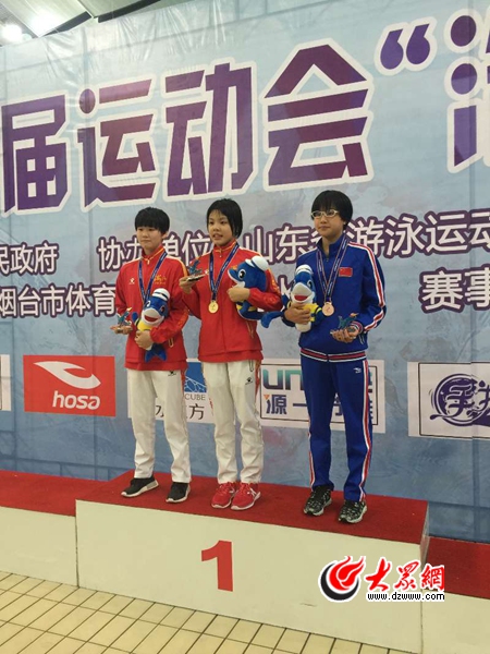 在隨后進行的女子11-12歲組100米仰泳是這個組別仰泳全能的最后一個項目。剛剛游完50米自由泳的王一淳再度出戰,由于體能問題她只獲得了本項比賽的第二名,但是憑借前兩天4個項目累計的優勢,王一淳還是以總分3595分拿下了女子11-12歲組仰泳全能的金牌。濟南小將鄭玉佳后來居上也以總分3175分奪得了該組別仰泳全能的銅牌。11-12歲組全能最后一項100米蛙泳中,王一淳只游出了1分22秒95,排在所有選手的第20位,但是憑借昨天50米蛙泳中第三名和其余三個項目取得的高分,她蛙泳全能最終的總成績依然高居第二,再獲一枚銀牌,煙臺小將王晨羽在蛙泳全能上的表現也同樣令人驚喜,她以3114分為山東添得一枚銅牌。在賽會最后舉行的女子11-12歲組200米自由泳單項決賽中,體能已經透支的王一淳咬牙頂住,用一枚金牌為本次大會畫上了圓滿的句號,同時在本項比賽中我省趙煜獲得了一枚銅牌。另外,在女子13-14歲年齡組中,我省小將馬銘瑄獲得了仰泳全能銀牌,陳雨荷獲得了蝶泳全能的銅牌。