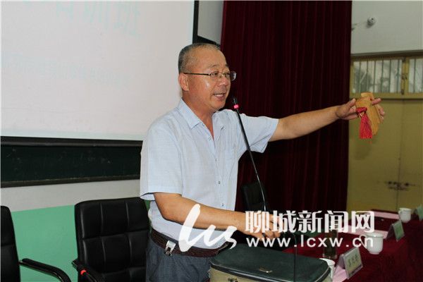 8月12日,星期六,坐落于冠縣職教中心的冠縣公益曲藝學校傳出陣陣清脆的快板聲。這里,山東快書高派第三代傳人李貴才正在向學員們傳授快書和快板。