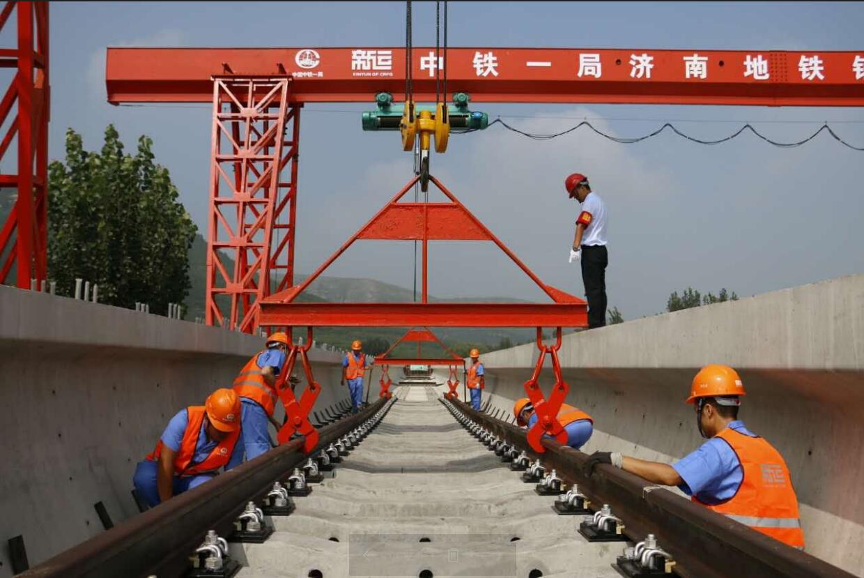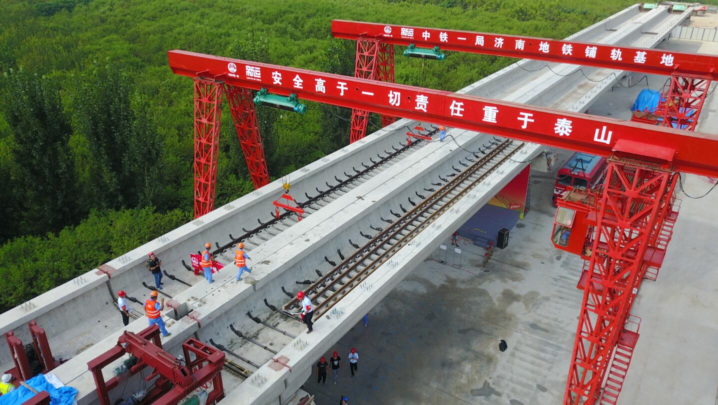 大眾網濟南8月20日訊 8月20日上午,在濟南軌道交通R1線始發站池東鋪軌基地,隨著濟南軌道交通集團董事長陳思斌的一聲令下,中鐵一局鋪軌工人操作著兩臺龍門架,將一節25米軌排順利鋪裝到高架橋面線路上,這標志著濟南首條地鐵正式進入鋪軌階段,工程建設重點將由土建施工逐步向機電設備安裝重大工序轉換,意味著泉城人民期盼已久的“地鐵夢”離現實又近了一步。