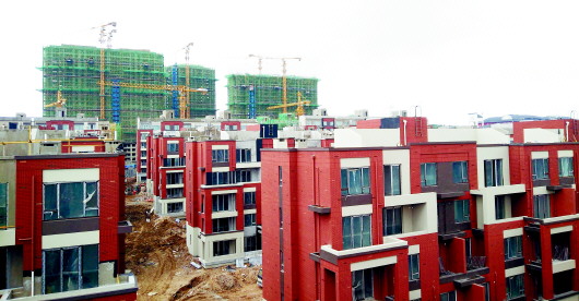 城陽虹子湖畔在建樓盤。