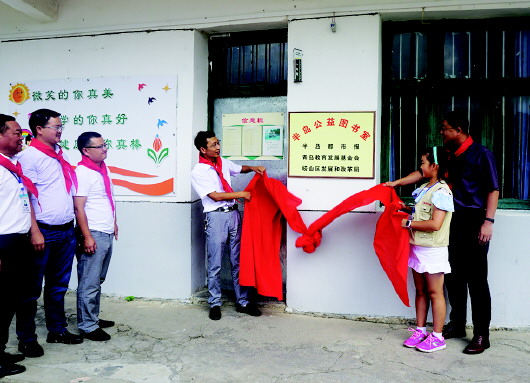 揭牌儀式結束后,半島學生記者代表半島都市報將2000冊愛心圖書捐贈給了后寨小學的學生。這2000冊圖書,匯聚了諸多“愛心”。除了“半島公益”與“小小力”愛心基金以及部分愛心企業共同募集外,青島26中的師生在張小玉老師的組織下還捐贈了600余冊圖書。“當看到孩子們看書時入迷的眼神時,太讓人感動了。”游學團隨行記者說道。