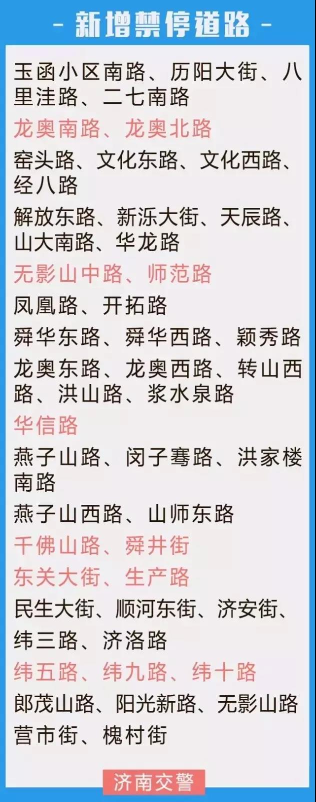 緯二路、緯十二路、經一路、經七路、經十路(段店立交東口至奧體東路路口)、濼源大街、和平路、旅游路(歷陽大街至舜華路口)、明湖東路、明湖西路、明湖北路、花園路、二環東路(旅游路口至工業北路口)、歷山路、英雄山路。