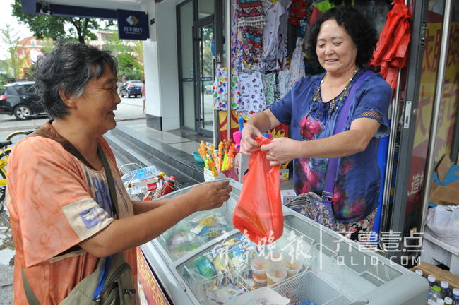 邢威敏的小店在威海統一路,明明是個外貿童裝店?伤顚氊惖膮s是店里兩個大冰柜。每天最開心的是守在冰柜前,把各式各樣的冰棍遞到小朋友手中。孩子們都親切地喊她“冰棍奶奶”。