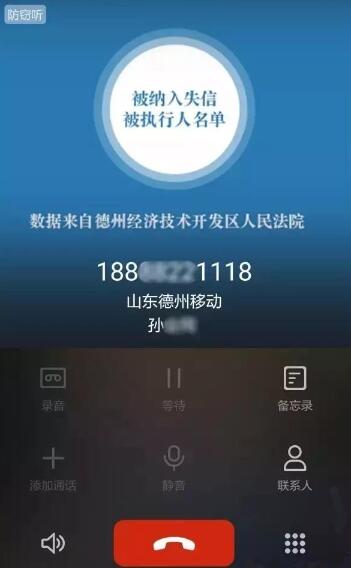 凡安裝“360手機衛(wèi)士”APP的用戶,無論是撥打還是接到被執(zhí)行人被標(biāo)記號碼的電話,均會在手機屏幕上顯示“xxx已被納入失信被執(zhí)行人名單”的提示字樣。2017年9月8日,德州經(jīng)濟技術(shù)開發(fā)區(qū)人民法院與360公司簽訂“失信被執(zhí)行人電話顯示標(biāo)注功能”相關(guān)協(xié)議。