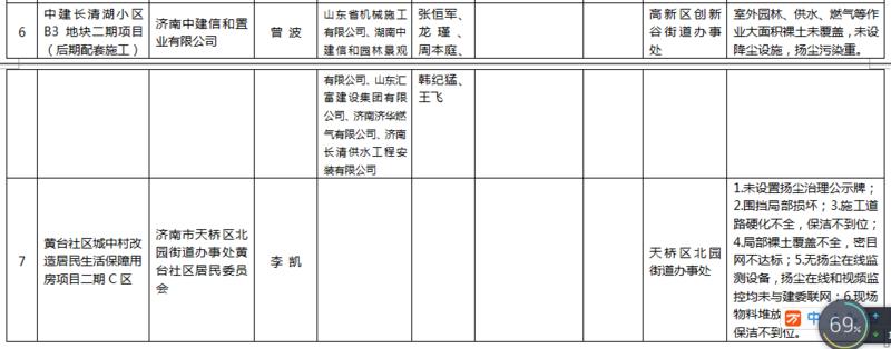 對揚塵治理較差,整改不及時或屢改屢犯的濟南唐人中心一期A-3、A-4、A6地塊房地產開發項目等7個項目的參建單位和屬地管理部門,予以全市通報批評,責令限期整改,計入不良行為記錄,納入誠信評價體系,并將其違規行為移交相關執法部門進行處罰。