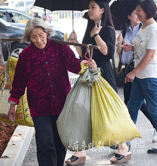 “他們都不容易。我不窮,我能賣菜掙錢。”“扁擔(dān)奶奶”說。