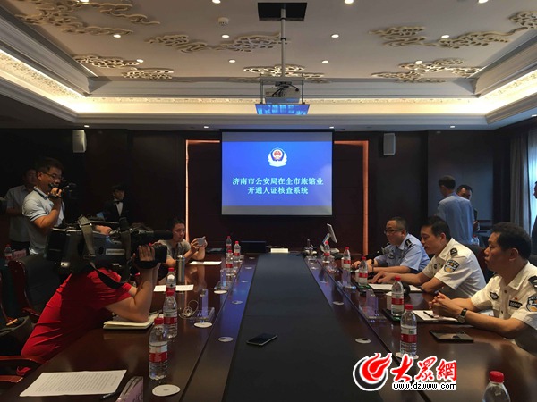 大眾網濟南9月26日訊 今天,濟南市公安局召開全市旅館業開通人證核查系統新聞發布會。記者在會上了解到,“旅館業人證核查系統”近期將在全市賓館酒店行業中測試開通,該系統通過掃描人臉面部特征與身份證的照片進行比對,在10秒鐘內就能確定住宿人員持有的身份證與本人是否相符。對未攜帶身份證的旅客,通過“刷臉”還可以核對其身份信息,真正實現一分鐘“刷臉入住”。目前該系統已在南郊賓館、山東大廈、舜耕山莊、齊匯維景、藍海御華等濟南市內九家賓館上線,年底將覆蓋全市60%的賓館酒店。