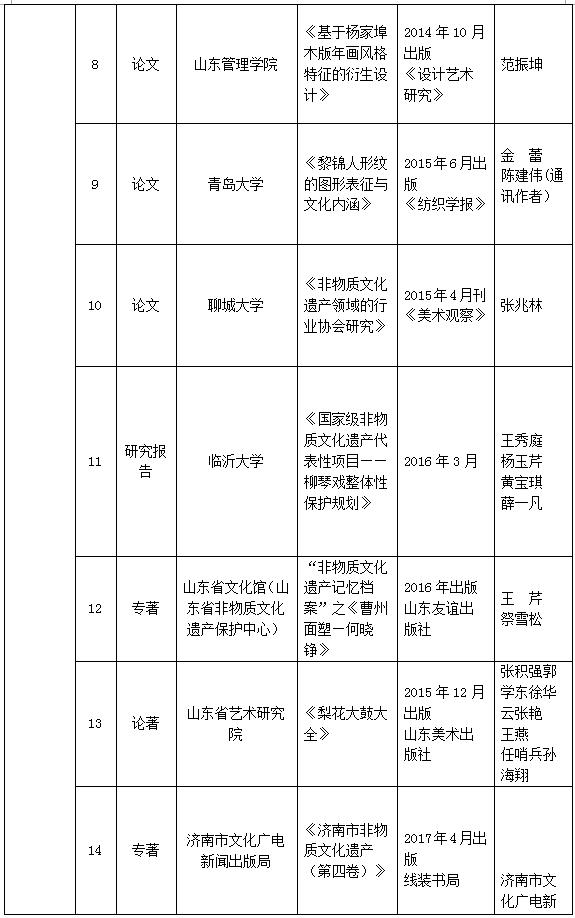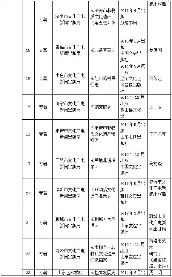 山東省非物質(zhì)文化遺產(chǎn)保護(hù)優(yōu)秀科研成果評(píng)選結(jié)果