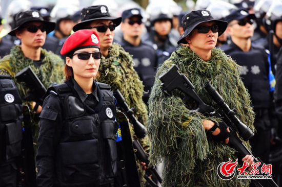 大眾網濟南9月29日訊 29日,濟南市特警支隊舉行安保動員誓師大會。150余名黑豹突擊隊員、武裝巡邏民警、摩托車機動隊員、女子特警隊員、安檢排爆隊員、五區特警隊員甲胄在身、使命在胸,虎賁之師、氣勢浩蕩,精神振奮、士氣高昂。10余輛特戰車輛、武裝巡邏車、反恐突擊車、裝備支援車、運兵車、裝備車集結列陣,蓄勢待發。