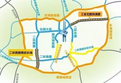 工業北高架路西接全福立交、北園高架,東連郭店立交與繞城高速東線實現無縫連接,成為橫貫城區最長的東西快速路。
