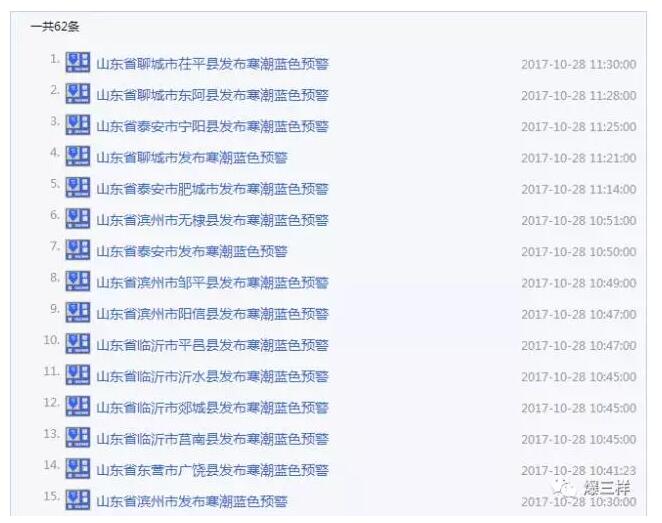 與此同時,爆三樣從山東省氣象臺了解到,截至28日11:20,山東共有62個市縣發(fā)布了寒潮藍(lán)色預(yù)警。