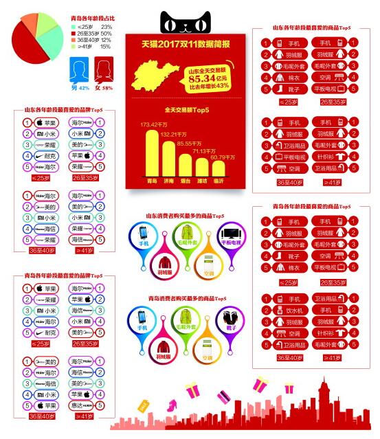 全省首位 天貓雙11青島人狂花17億