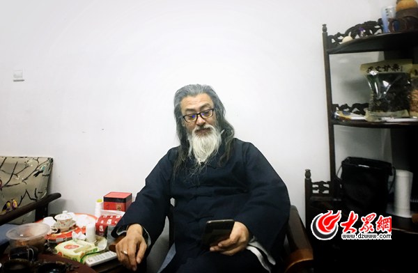 芙蓉館的館主李濤是地地道道的濟(jì)南人,今年54歲的他留著長發(fā)、蓄著胡須,棉麻褂和老布鞋是他的標(biāo)配。當(dāng)“風(fēng)仙道骨”的李濤穿梭在古樸的芙蓉館里,記者霎那間以為回到了過去的濟(jì)南。李濤與這座芙蓉館生死相依,他說這輩子除了曲藝再也不會(huì)去做別的事情了。