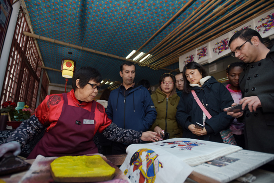 大眾網(wǎng)濰坊11月25日訊 11月25日,由山東省人民政府新聞辦公室、山東大學主辦,中國山東網(wǎng)承辦的“‘感知山東’——百名外國留學生看山東”活動走進濰坊楊家埠民間藝術大觀園,留學生們實地參觀體驗了濰坊風箏、木版年畫的制作過程,了解幾百年前楊家埠人的生活方式,體味楊家埠人古老的民俗、民間風情,感受民俗的魅力。