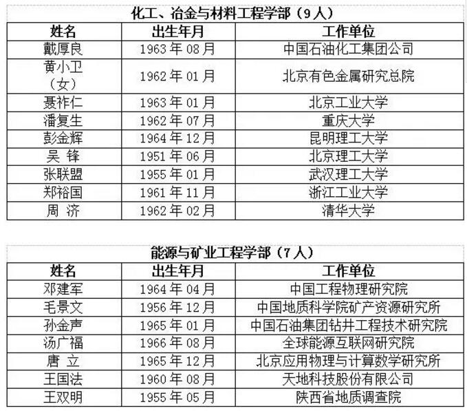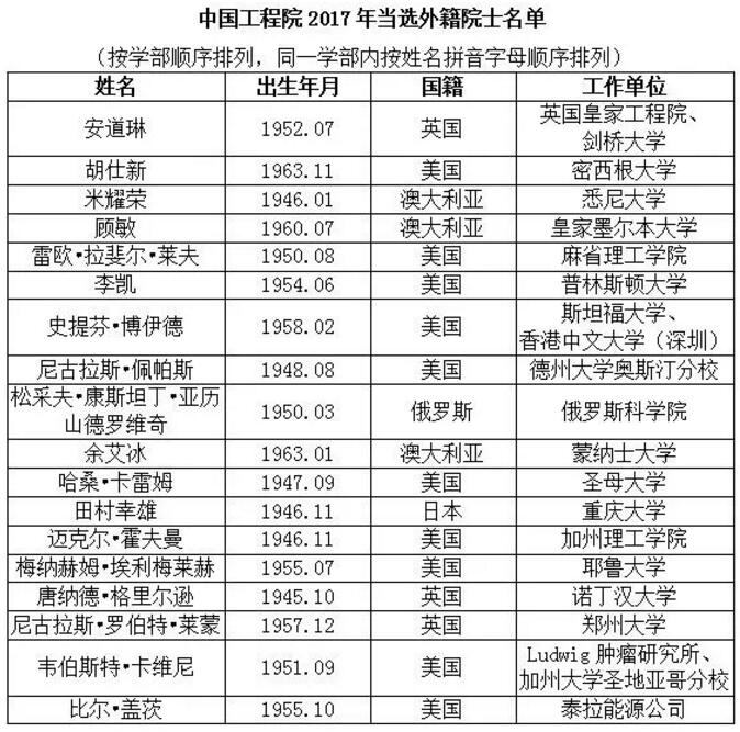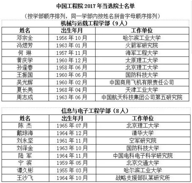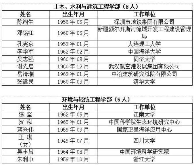 中國工程院2017年院士增選結果已經主席團會議審議通過并報國務院備案,現予公布。