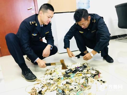 在青島機(jī)場快件監(jiān)管中心海關(guān)與檢驗(yàn)檢疫聯(lián)合查驗(yàn)區(qū),記者見到了這批被查扣的入境快件,經(jīng)查,這批貨物共計16公斤,貨值1600美元約合人民幣1萬多元。