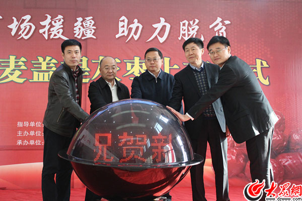 大眾網(wǎng)訊(通訊員 劉曉峰) 2017年12月5日,“市場援疆 助力脫貧”新疆麥蓋提灰棗上市儀式在新疆喀什麥蓋提縣舉辦,山東省援疆指揮部副總指揮、喀什地區(qū)行署副專員安文建出席活動,山東省金融辦公室、喀什地委農(nóng)辦、喀什地區(qū)金融辦公室、日照市金融辦公室、麥蓋提縣有關(guān)單位、山東交易市場清算所、當(dāng)?shù)丶t棗加工貿(mào)易企業(yè)和部分金融機(jī)構(gòu)參加儀式。