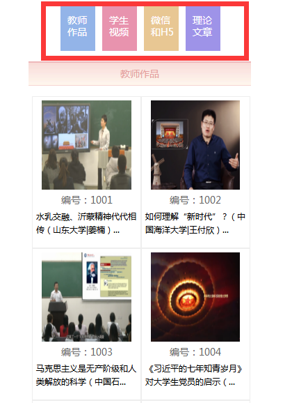 第二步:進入投票頁面后,作品分四類展示,點擊每一類即可查看選手的作品和編號。