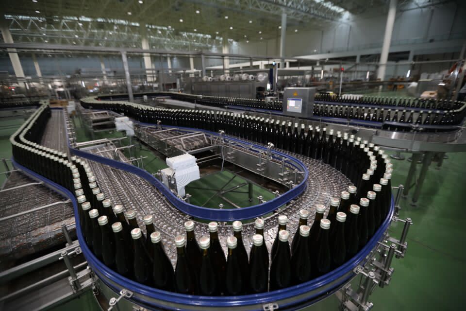 張裕國際葡萄酒城灌裝車間內的白蘭地灌裝線。