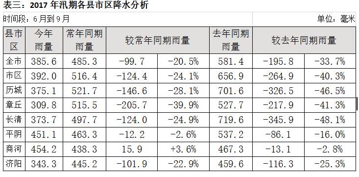 今年汛期降水情況統(tǒng)計(jì),汛期降水較少,成為今冬趵突泉水位較低的原因之一。(濟(jì)南市水文局提供)