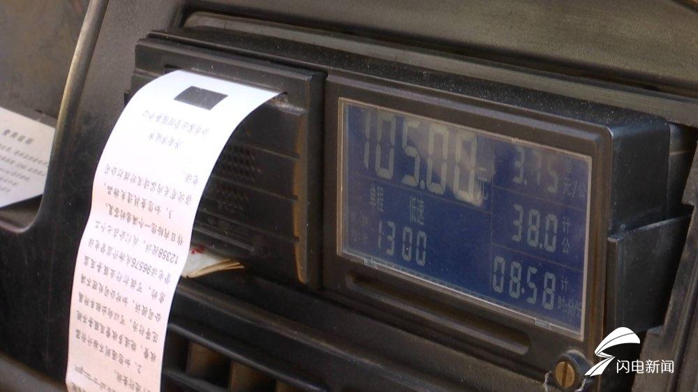 記者乘坐一輛調表后的出租車,從泉城公園出發前往遙墻機場,出租車行駛38公里,等待時間為8分鐘,收費105元。