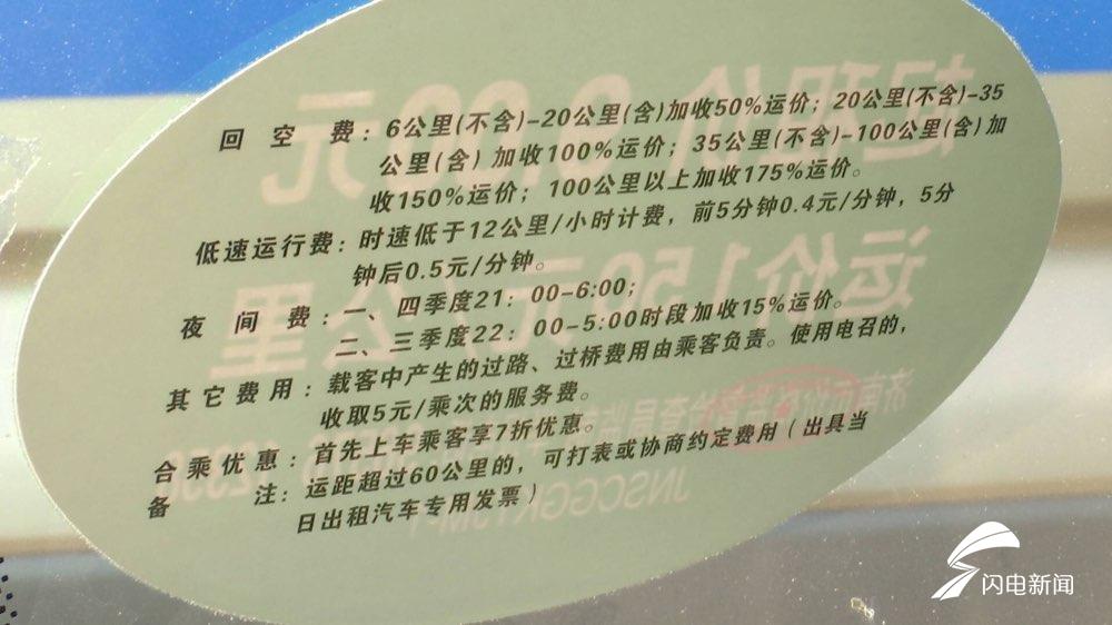除了安裝調表后的計價器,出租車駕駛員還將印有起步價、車公里價、回空費等收費標準的新的運價標簽貼在了車上。