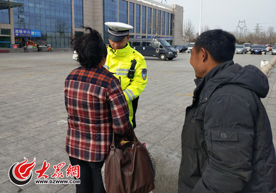 交警將兩位老人送到汽車站,并詢問他們有沒有錢買票