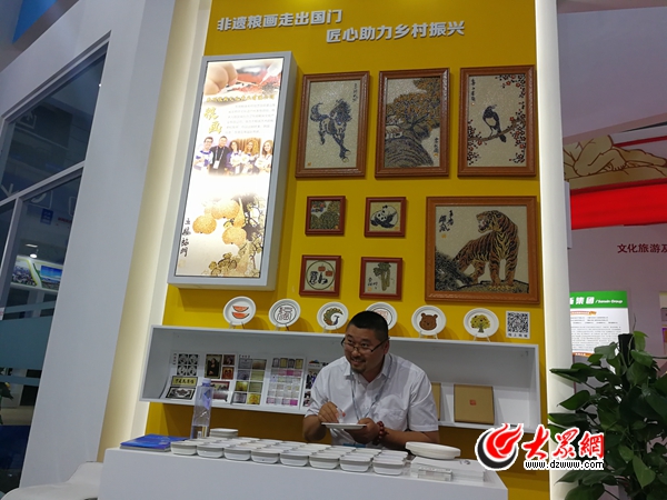 在齊魯優(yōu)秀傳統(tǒng)文化傳承創(chuàng)新板塊,非遺糧畫吸引了眾多觀眾現(xiàn)場體驗(yàn)。
