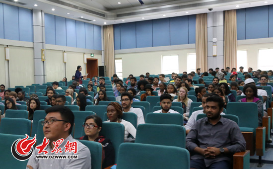 民警為齊魯醫學院的近百名外國留學生講解交通安全
