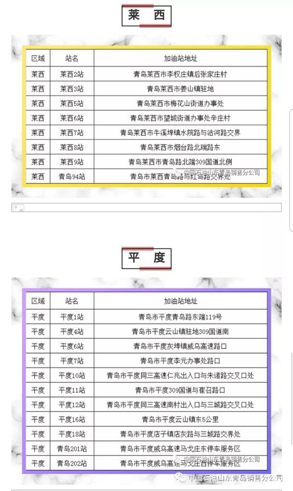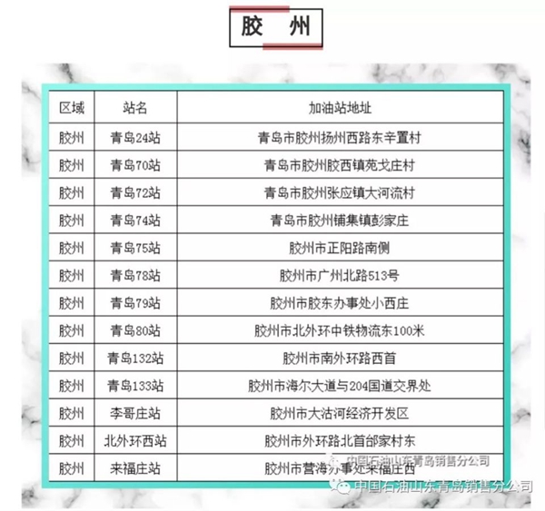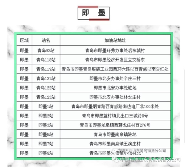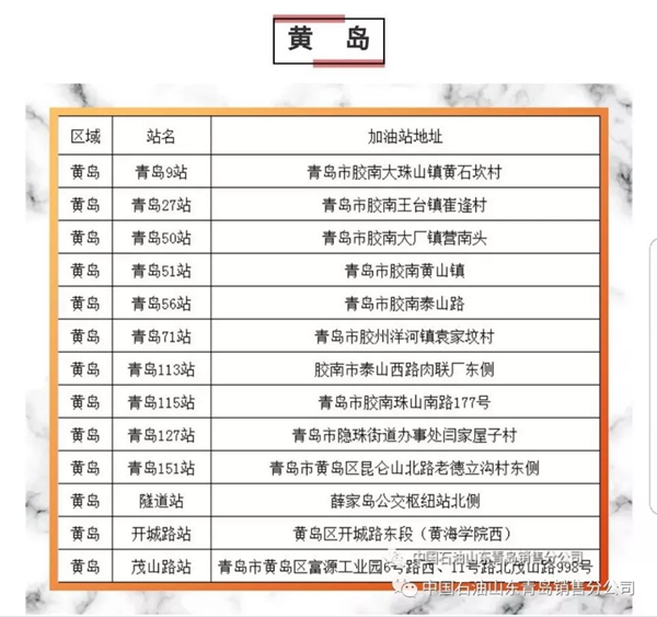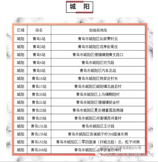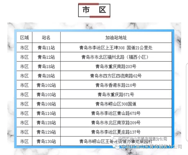以下為中石油青島地區(qū)正常營業(yè)加油站點明細(xì):