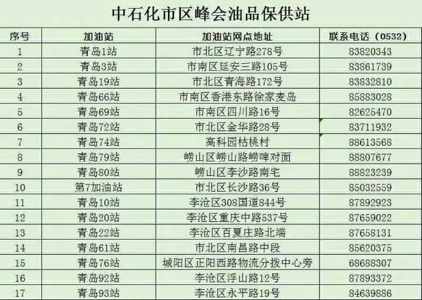 以下為中石化青島市區(qū)正常營業(yè)加油站明細(xì):