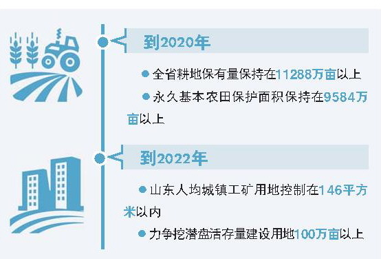 本報濟南6月5日訊 記者從省政府新聞辦今天召開的新聞發布會上獲悉,根據省政府日前印發的《關于創建國土資源節約集約示范省的實施意見》,到2020年,全省耕地保有量保持在11288萬畝以上,永久基本農田保護面積保持在9584萬畝以上。到2022年,山東人均城鎮工礦用地控制在146平方米以內,力爭挖潛盤活存量建設用地100萬畝以上,農村居民點等集體建設用地規模力爭減少100萬畝以上,建設用地地均GDP產出由目前的14.3萬元/畝提升至25萬元/畝以上。