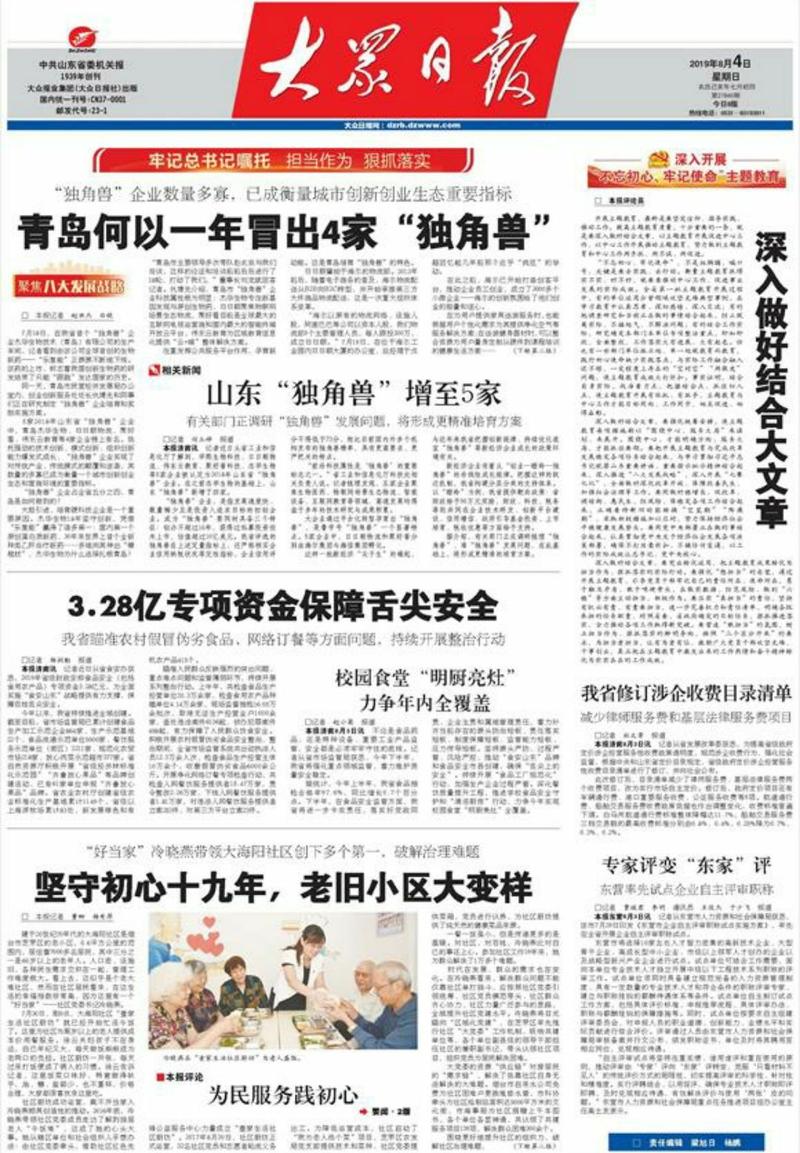 5家2018年山東省“獨角獸”企業中,青島杰華生物、日日順物流、聚好看、偉東云教育等4家企業榜上有名。依托強勁的技術創新、模式創新、組織創新能力爆發式成長,“獨角獸”企業實現了對傳統產業、傳統模式的顛覆和逆襲,其數量的多寡已成為衡量一個城市創新創業生態和營商環境的重要指標。