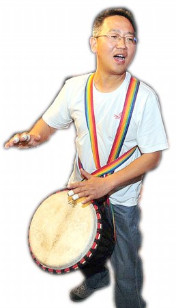 海東本就是鼓手,打了十幾年架子鼓,現在淄博辦了一所滾石打擊樂學校。他玩非洲鼓時間不長,從今年1月份開始。現在淄博非洲鼓聚會,都是他組織,每周一次,也是數個鼓友帶著鼓聚到一起打。“它和別的樂器不一樣,一個人在家里玩沒意思,就得人多大家一起玩。入門簡單,只要愿意伸手就能享受樂趣。最有趣的是大家如何配合好,即興發揮合奏出強烈、動聽的節奏。”海東說,他的學校里買了30多個非洲鼓,很多學鼓的小孩子都很喜歡非洲鼓,經常有小朋友奶聲奶氣地舉手問:“老師,咱們什么時候才能打非洲鼓呀?”