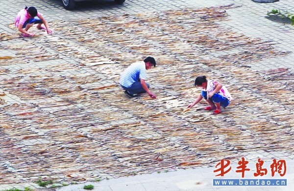 7月5日,在小港一處隱蔽的空地上,幾名市民趁晴好的天氣在曬魚。令人吃驚的是,他們竟然穿著鞋子直接踩在魚上面。據(jù)周邊的居民介紹,這幾人經(jīng)常在這里曬魚,這些魚一般到都送到了景點的商店和燒烤店。記者 王濱