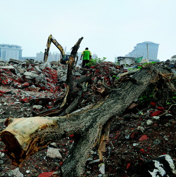 此前,曾有信息傳出,解放閣片區(qū)的改造將注重對(duì)老建筑和老街巷的保護(hù);同時(shí),按照土地出讓要求,開(kāi)發(fā)商在開(kāi)發(fā)過(guò)程中必須保護(hù)好名木古樹(shù)。圖為現(xiàn)場(chǎng)遺留的古槐枝干。