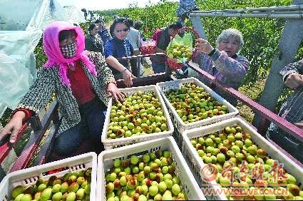 沾化冬棗開始上市,不少游客在沾化縣下河鄉東張村采摘冬棗。小小冬棗為當地人帶來了滾滾財源,該縣冬棗種植面積達到50萬畝,產值20多億元。本報記者 左慶 攝