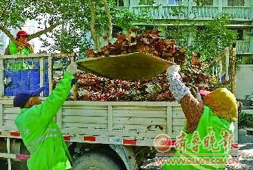 本報10月24日訊(記者 趙偉 實(shí)習(xí)生 管慶霞) 天氣驟然轉(zhuǎn)冷,市區(qū)道路上落葉增多,為確保城市道路整潔,保潔人員的工作量增加了,8000余名保潔員每天清掃落葉最多時達(dá)200噸。