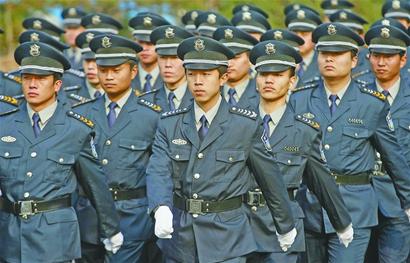 今天上午,濟南保安員換新裝儀式在天橋保安公司舉行,首批100名保安員穿上了以變形盾牌、八角星、麥穗和飄帶為標(biāo)志性圖案的2011式服裝。上圖:昨天,濟南保安員換新裝儀式在天橋保安公司舉行。