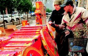 1月14日,農歷臘月廿一,濟南市繞城高速以內的區域,煙花爆竹指定銷售點紛紛開張了。圖為文化西路一商家將各種煙花爆竹擺上街面,供市民們選購。買回煙花爆竹不能立馬燃放,跟往年一樣,只能等到農歷小年。明天就是小年了,除了放鞭炮,還有不少老民俗。 本報記者 周青先 攝影報道